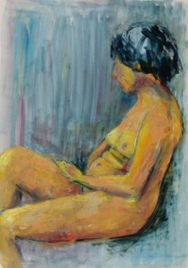 Akt sitzend von vorne, 2004, Acryl, 88x75cm